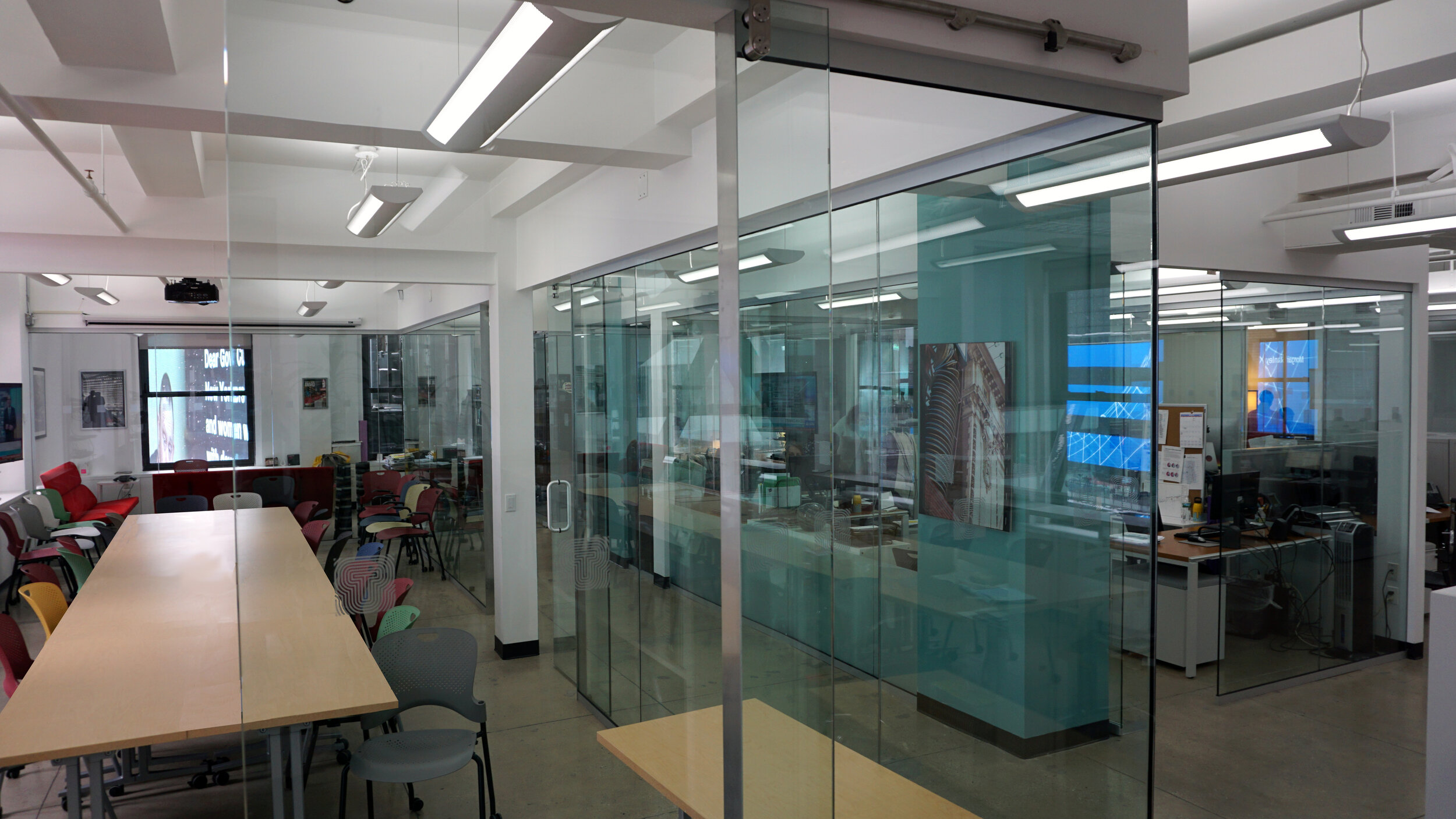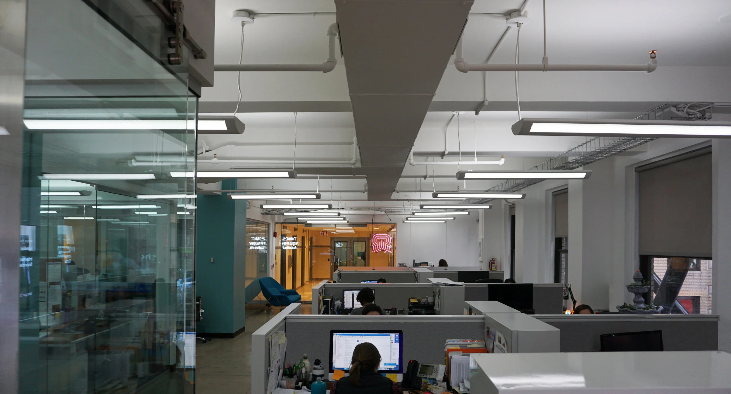 AA64s design for the Times Square Alliance's new office. The design will include custom graphics and neon as well as a variety of meeting, work and social spaces.